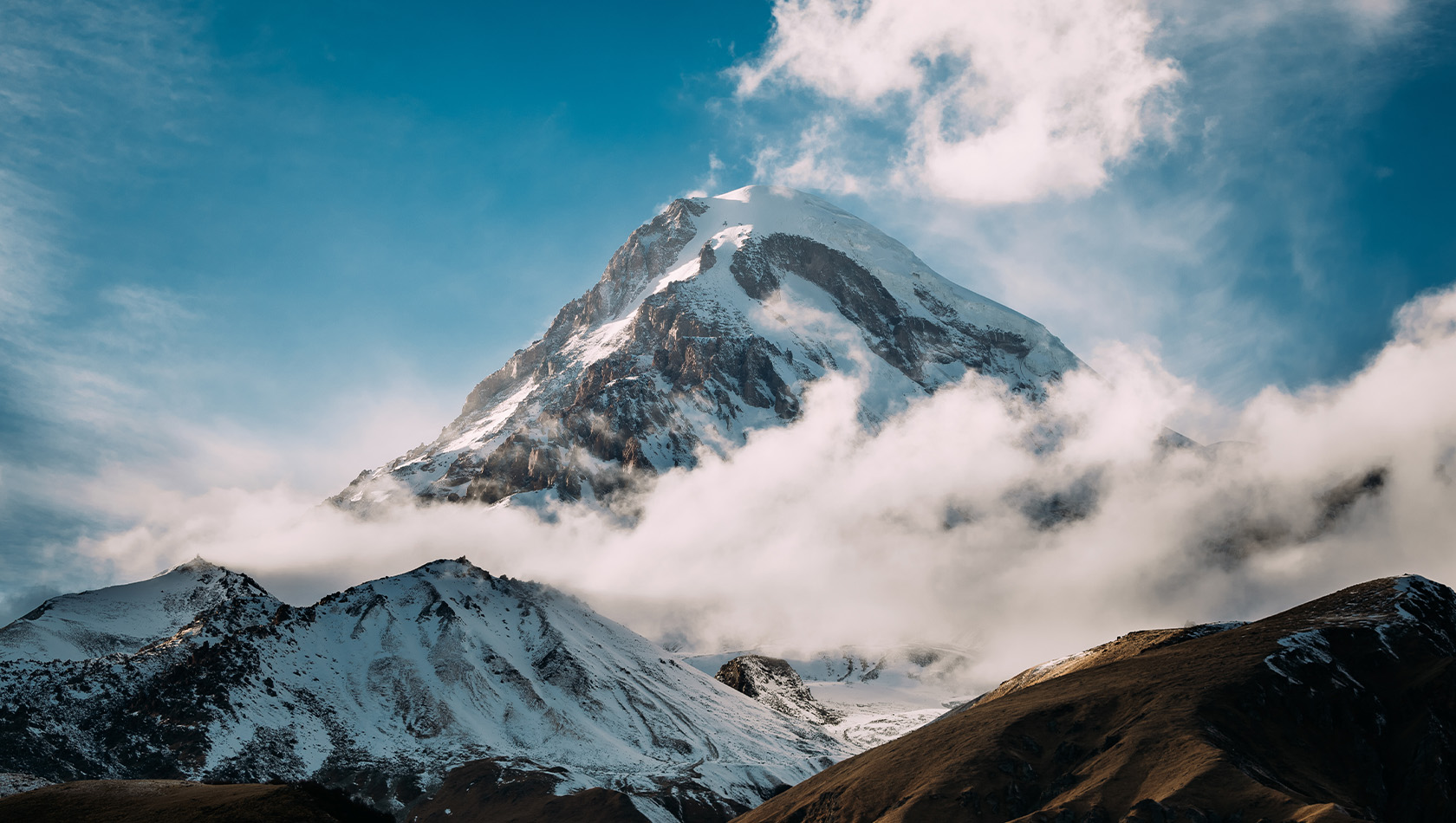 Гора Казбек (5054 метра над уровнем моря) – главная природная достопримечательность региона Казбеги и одна из самых известных вершин Кавказа. В далеком прошлом Казбек был грозным вулканом, извергавшим лаву и пепел, но его последнее пробуждение осталось задолго до нашей эры. Древнее грузинское название Мкинварцвери, что значит «ледяная вершина», красноречиво говорит о его суровом характере. Лишь в начале XIX века гора получила свое нынешнее имя – Казбек.