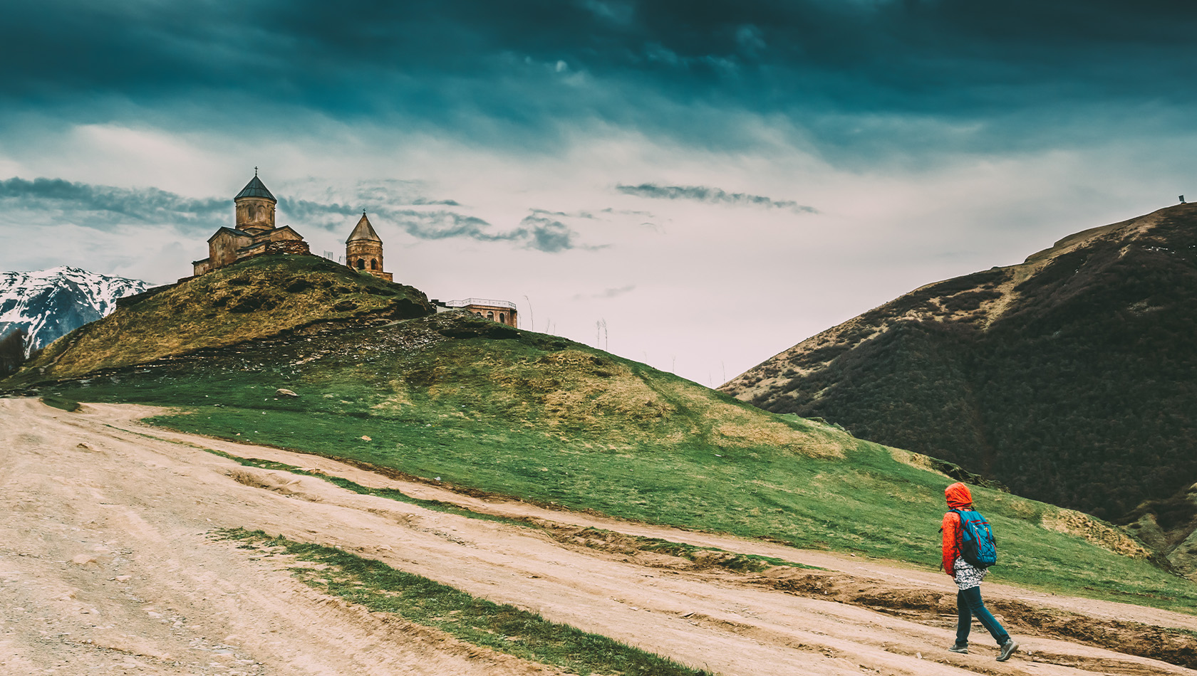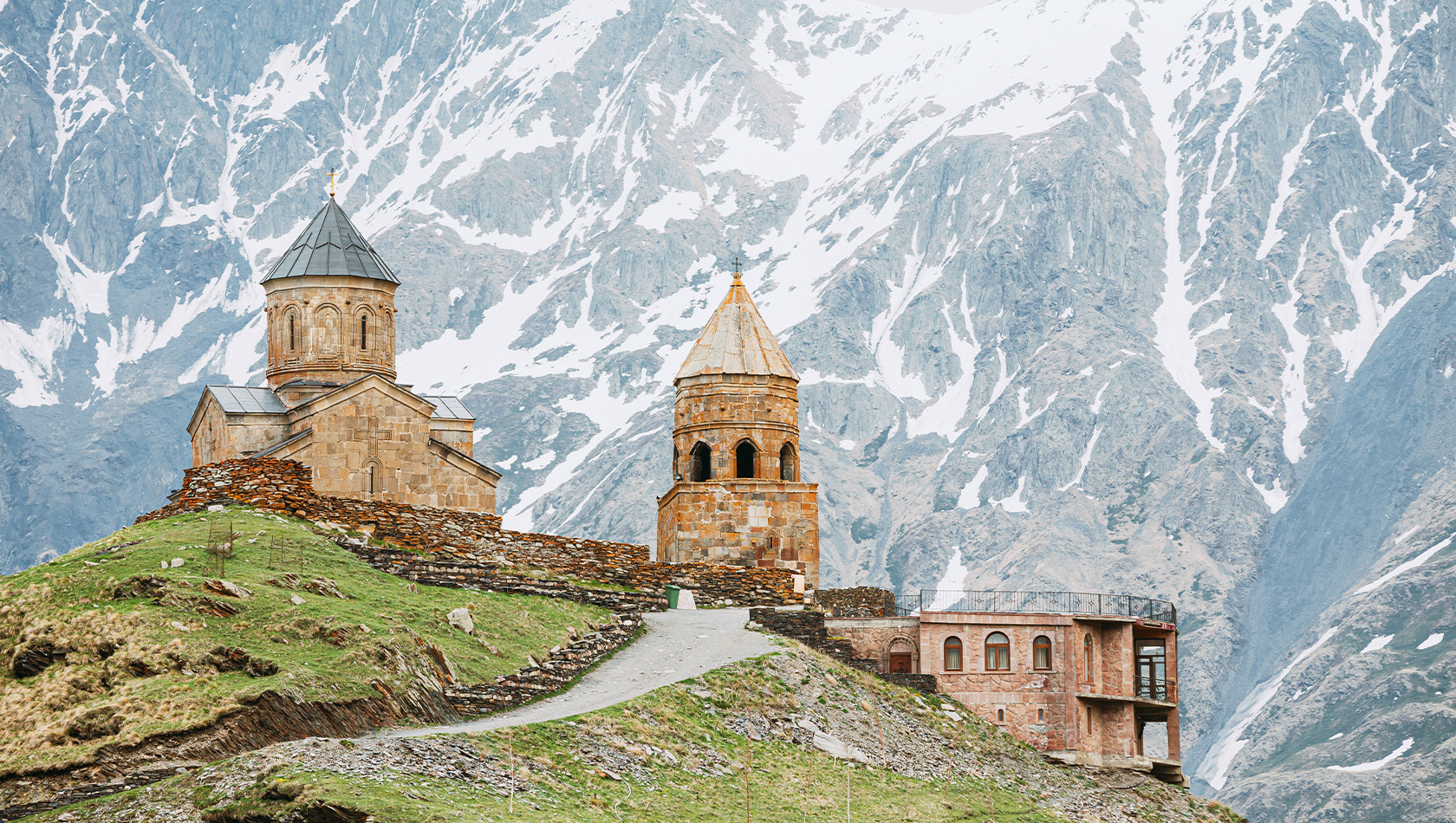 Мы совершим живописную прогулку к храму прямо из нашего отеля в Степанцминде. Этот подъем не требует специальной экипировки — достаточно удобной одежды и обуви, чтобы подняться на такую высоту и насладиться панорамой, открывающейся с церковного холма. Всю дорогу нас сопровождает потрясающая природа и конечно, величественный Казбек!