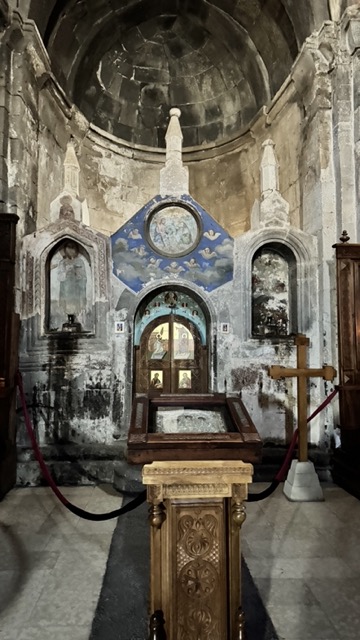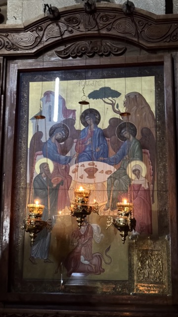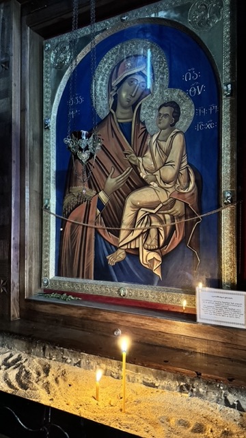 Внутри церкви нас ждет аскетичная красота: лаконичные фрески и уникальные иконы VI века. Рядом с церковью сохранились колокольня и руины некогда мощных монастырских стен.