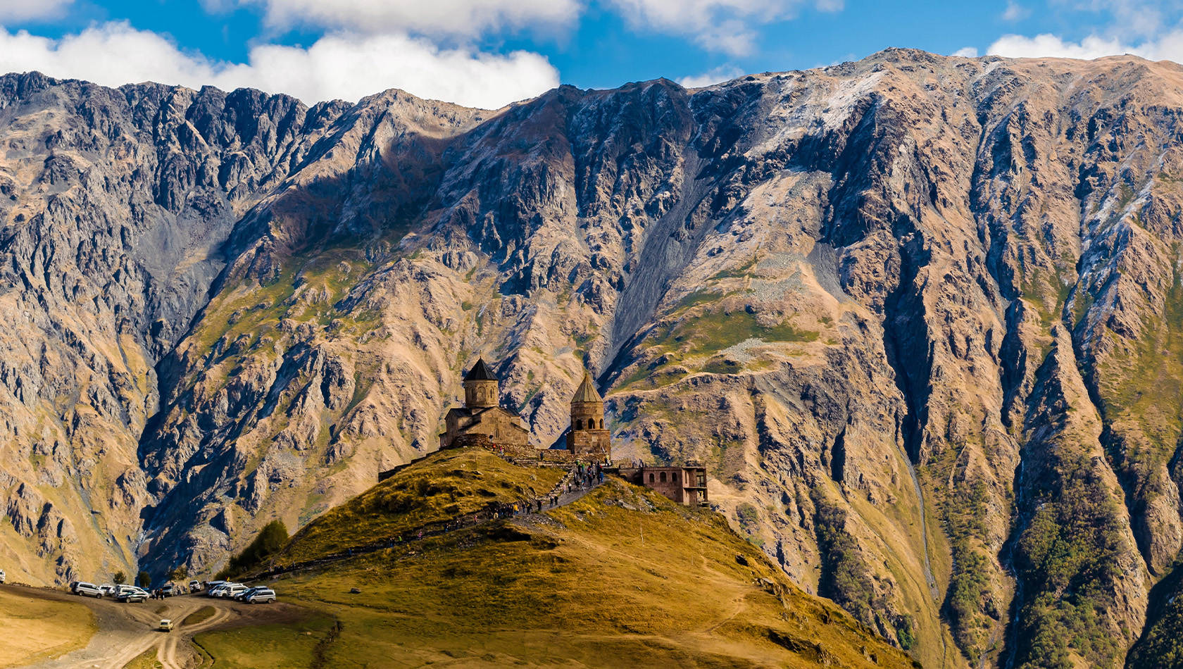 Наш тур пройдет в Грузии, в поселке Степанцминда, что в переводе означает «Святой Степан», так же поселок называют Казбеги. В этом высокогорной местности нас ждут захватывающие пейзажи, чистый горный воздух, живописные водопады и ущелья, а также возможность созерцать гору Казбек и насладиться пешими прогулками.