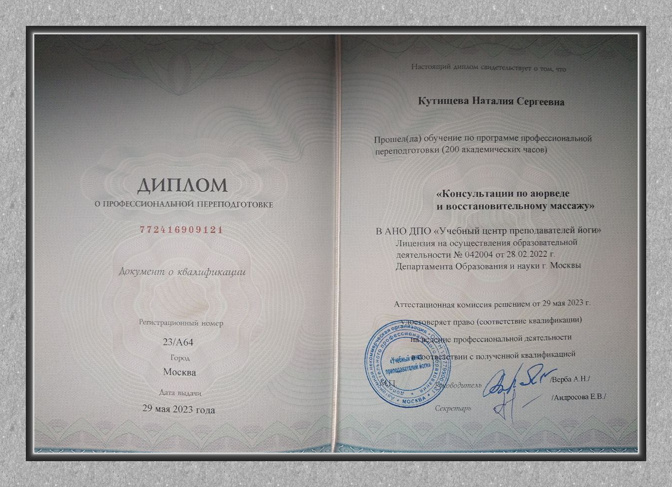 - Курсы массажа лица в аюрведическом центре в Керале (Варкала), в 2008 г.