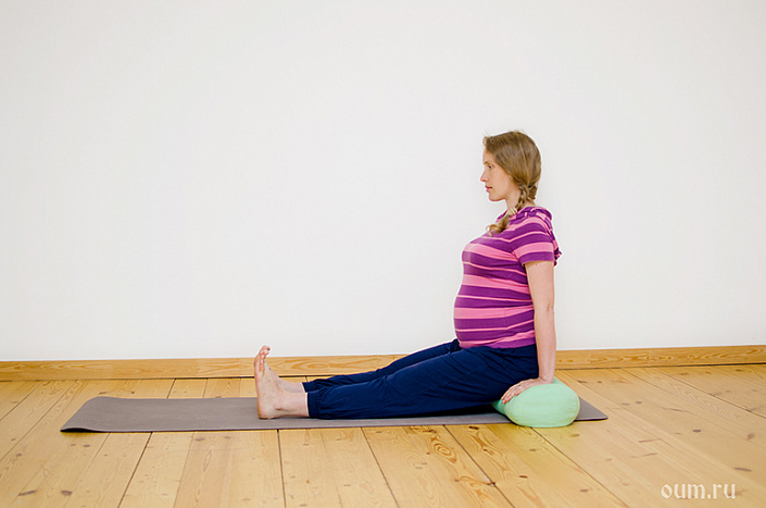 Как видите, во время беременности большинство упражнений сидя выполняют на опоре. Это наиболее безопасный и комфортный вариант, помогающий снять излишнюю нагрузку в спине и не зажимать область живота. Поэтому рекомендую всем беременным обзавестись таким «пропсом», как болстер (специальный валик, набитый ватой или гречишной лузгой), который также можно использовать в асанах лёжа, перевёрнутых асанах и в асанах на раскрытие грудной клетки. Кстати, о грудной клетке — не забывайте во всех асанах обращать внимание на неё. Постоянно раскрывайте грудь, усиливая мощность дыхания и развивая выносливость — это ослабит общее напряжение в теле.