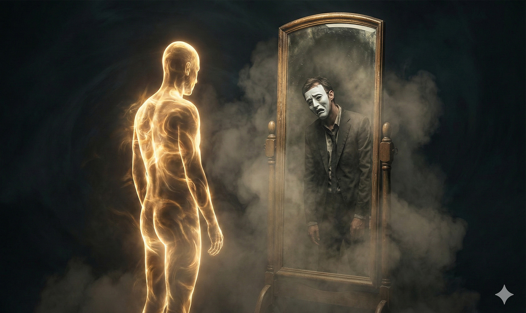 Асмита же возникает как следствие неверного использования ахамкары. Когда процесс различения окрашивается привязанностью и страхом потери, когда человек начинает судорожно цепляться за свой образ и защищать его от любых посягательств — вот тогда появляется страдание. Асмита — это не сам инструмент эго, а искажённое убеждение: «Я и есть эта рука, я и есть этот процесс различения». Получается замкнутый круг: ахамкара говорит «это моё тело», а асмита добавляет «и это тело — это я».