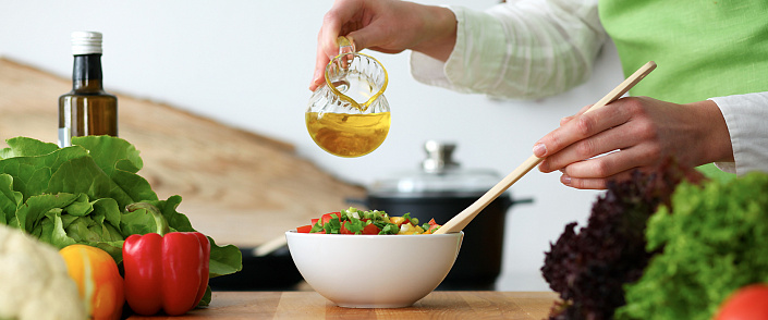 - обезжиренные продукты, так как в жирах при расщеплении содержатся насыщенные жирные кислоты – источники синтеза АТФ. Растительные масла прекрасно восполняют потребность в жирах.