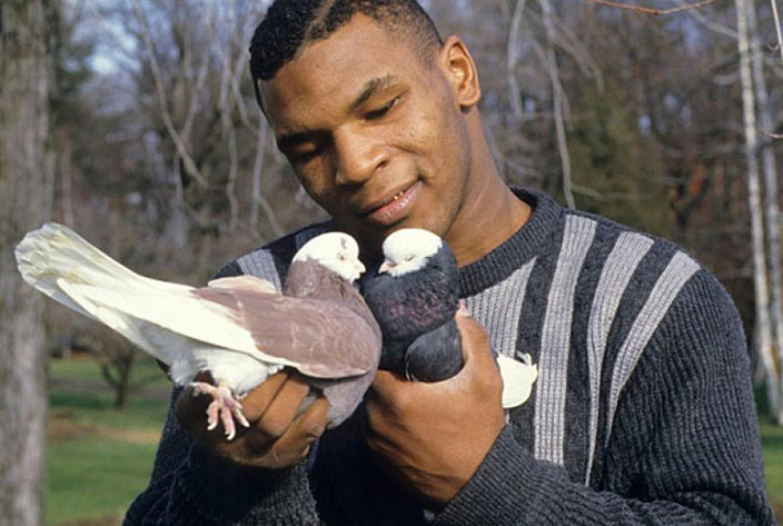 Говоря о Майке Тайсоне, нельзя не упомянуть его особое отношение к голубям, которые существуют бок о бок с бывшим боксёром с 7 лет. Он называет этих птиц своими детьми и готов проводить с ними сколько угодно времени.