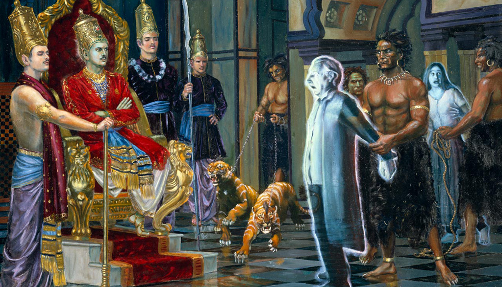 «Мой дорогой царь, человек, который присваивает чужую законную жену, детей или деньги, в момент смерти арестовывается свирепыми Ямадутами, которые связывают его верёвкой времени и насильно бросают на адскую планету, известную как Тамисра. На этой очень тёмной планете грешника наказывают Ямадуты, которые бьют его и упрекают. Он голоден, и ему не дают пить воды».