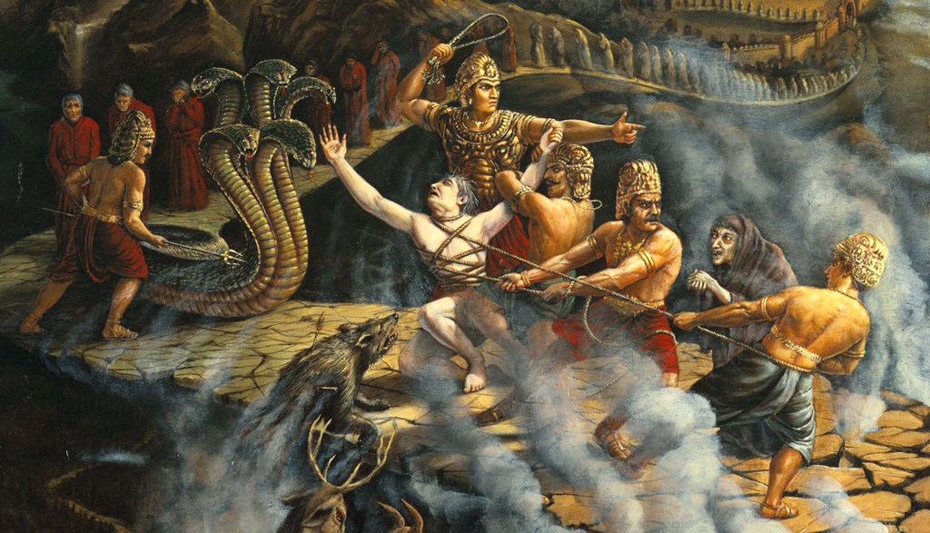 «Те, кто в этой жизни подобен завистливым змеям, всегда сердитым и причиняющим боль другим живым существам, после смерти попадают в ад, известный как Дандашука. Мой дорогой король, в этом аду есть змеи с пятью или семью капюшонами. Эти змеи едят таких грешников точно так же, как змеи едят мышей»