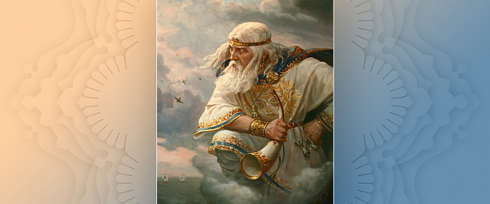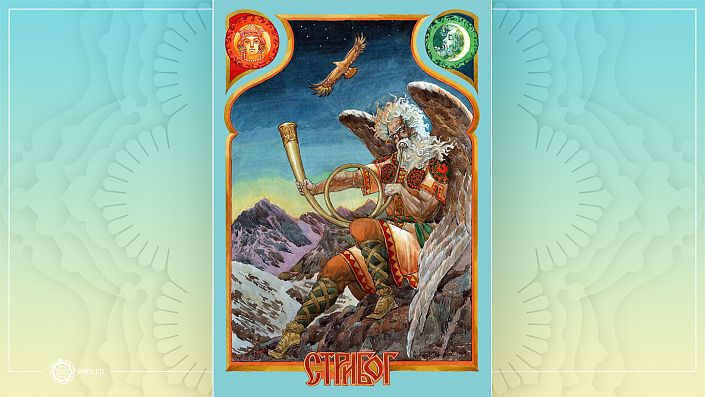 У Стрибога очи синие — отражение безграничного небесного океана. Он плывёт в ладье по лазоревым воздушным просторам и трубит в рог, оповещая о своём приближении. Так начинается миф об одном из верховных богов славянского пантеона — владыке ветров, чья сила наполняет пространство между небом и землёй.